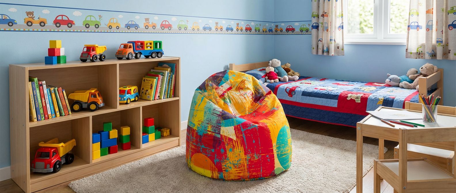 Mit seinen grosszügigen Massen bietet der Sitzsack ausreichend Platz für Kinder jeden Alters. Der widerstandsfähige Aussenstoff macht ihn besonders robust und langlebig – perfekt für den lebhaften Alltag im Kinderzimmer oder Wohnzimmer.
